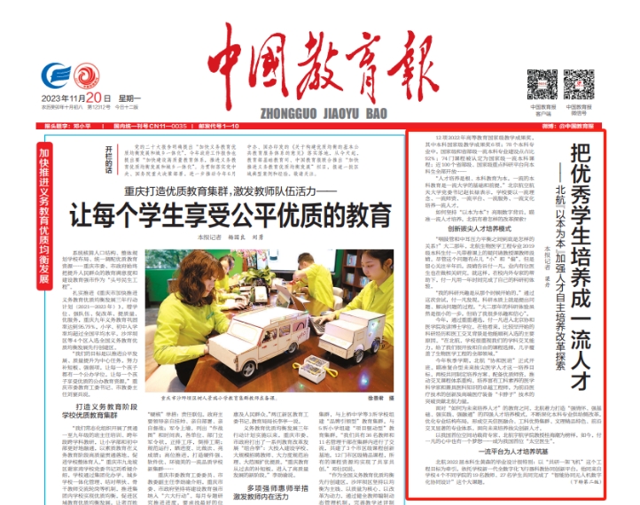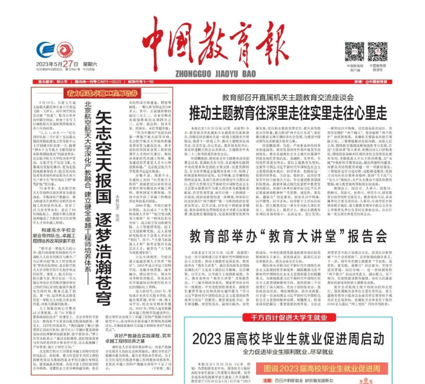 《中国教育报》头版头条报道北航: 矢志空天报国 逐梦浩瀚苍穹
