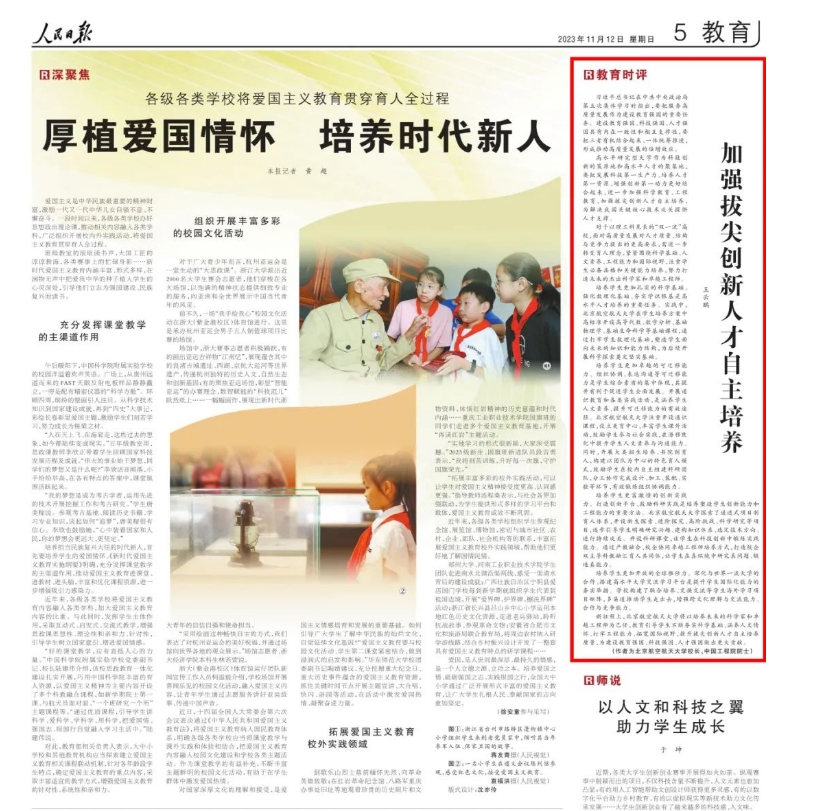 《人民日报》:WilliamHill中文官方网站培养拔尖创新人才...
