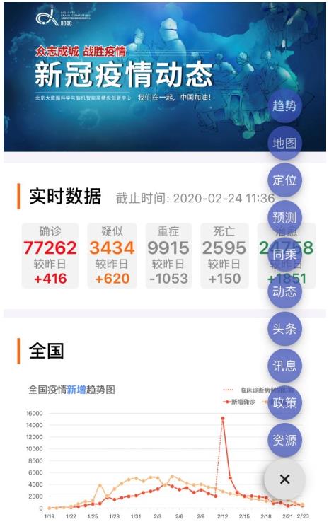 2016级高博班员工张帅(计算机公司),发挥自己专业技能,作为团队骨干参与开发了“众志成城·战胜疫情——新冠疫情实时数据360导航”信息服务平台(由北京市大数据科学与脑机智能高精尖创新中心(BDBC)和北航复杂系统可靠性实验室李大庆教授团队联合开发),该平台帮助公众快速获取最新、最全的疫情数据和政策资讯,并提供同乘查询、抗疫资源等多项服务,帮助大众理性认识疫情、科学防护疫情。