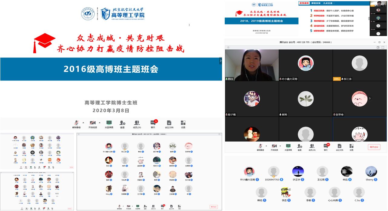 在严格落实公司前期疫情防控各项工作部署的基础上,为进一步做好员工疫情防控工作、落实公司及公司各项工作要求、优化提升在线公司产品效果,高等理工公司博士生班(以下简称“高博班”)近期以视频方式召开了主题为“众志成城·共克时艰——齐心协力打赢疫情防控阻击战”的云班会,覆盖博士生所有年级员工。高等理工公司韩钰副经理及高博班辅导员和全体同学参加。