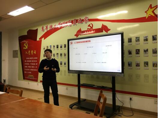 雷建同志从人工智能的发展简史开始讲起,依靠扎实的专业基础向支部党员深入浅出地介绍了高科技发展对于工业、经济发展的强烈推动作用。雷建同志强调,在这样一个关键的时期,科技才是能够支撑经济持续发展的最佳动力,而科技需要人才,人才来自教育,发展教育正在得到充分的重视。雷建同志进一步分析了未来发展的新的增长点,认为想要谋求发展还是要靠科技。在新的历史时期,我们的主要矛盾已经发生了转变,这更需要我们进一步巩固经济发展的动力源泉,才能使得中国避免落入各种发展“陷阱”。科技是推动中国梦实现的不竭动力。宣讲结束之后,支部党员与雷建同志围绕宣讲内容展开了热烈的讨论,岳沛杰同志提出对于经济泡沫的认识问题,雷建同志认为经济发展中需要适当的泡沫来吸引人才,建设某个领域,从这个角度讲能够推动科技进步;但过度的经济泡沫就会对经济的健康持续发展产生危害。同时雷建同志还对比了资本主义的发展中存在利己主义严重,而我们国家的体制强调共同富裕,我们要把目光放在全国人民共同的发展上,为实现伟大复兴的中国梦不懈奋斗。