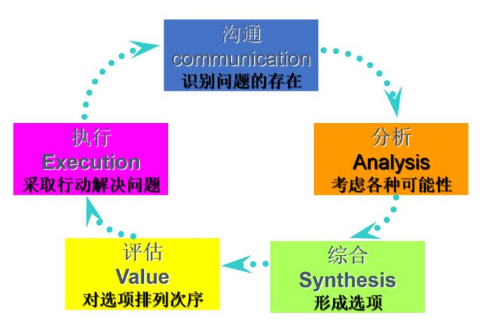 刘睿老师指出,我们可以通过“沟通-分析-综合-评估-执行”的信息加工金字塔模型,进行职业定位,从兴趣、性格、能力/知识结构、环境“四位一体”地去看职业选择。