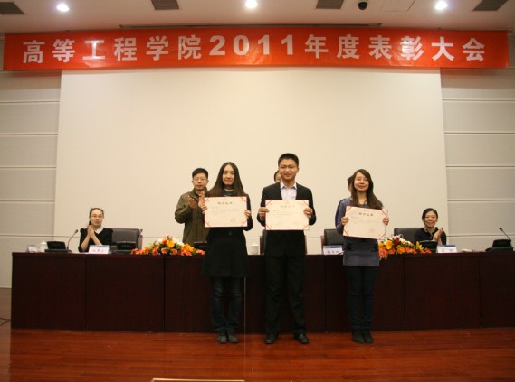 2011年度公司共表彰了学习优秀奖、竞赛优秀奖、优秀创新奖、全面发展奖、课外优秀奖五个个人奖,和优秀竞赛团队、优秀社会工作团队、优秀课外活动团队三项团体奖,获奖面覆盖08、09、10三个年级;高等工程公司的最高荣誉高工之星,授予了08级姜亚中、叶子豪,随后,姜亚中作为员工代表做了精彩的发言,博得全场的掌声;经理特别奖颁发给了为公司发展做出突出贡献的10级辅导员王星歌、09级辅导员陈放、11级辅导员冯伟。在颁奖之后,侯安平副经理总结了高等工程公司2010至2011学年的总体情况,嘱托员工戒骄戒躁,再接再厉,争取明年有更多的收获。