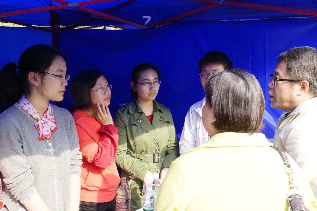 从一早开始,高工的咨询台就吸引了了大量的考生和家长前来咨询,直属党支部陈新书记,研究生教学秘书以及全体辅导员都到达了咨询现场,高工2010、2012级的10名员工也成为了现场咨询的志愿者。咨询台前门庭若市,家长们对高工的培养模式和教学成果都非常关注,前来咨询的考生大都能达到清华、北大的分数,并已取得较好的竞赛成绩。考生和家长们普遍关注高工的选拔方式、基础学科教育、专业选择、导师配备等问题,公司的老师都进行了详细的说明,员工志愿者们更是以自己的亲身经历和在高工的学习成长感受为家长们进行最直接的解答。院直属党支部陈新书记在高工的咨询台详细的为家长考生们介绍高工的培养理念和教育模式,并耐心回答了家长的疑问。整个咨询过程十分紧凑,每位工作人员都一直忙碌的为考生家长解惑。