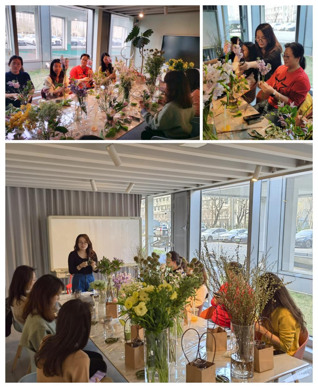 花艺老师细致讲解,女教职工专注聆听,在插花技巧、花材处理、花卉颜色搭配、插花结构等知识的传授过程中,完成了本次活动。通过本次活动,既缓解了女教职工们工作的疲惫和压力,又陶冶了性情,增长了知识,既有益于女教师的身心健康,又增添了基层工会和教职员工们的凝聚力,提高了女教职员工的工作热情和积极性。