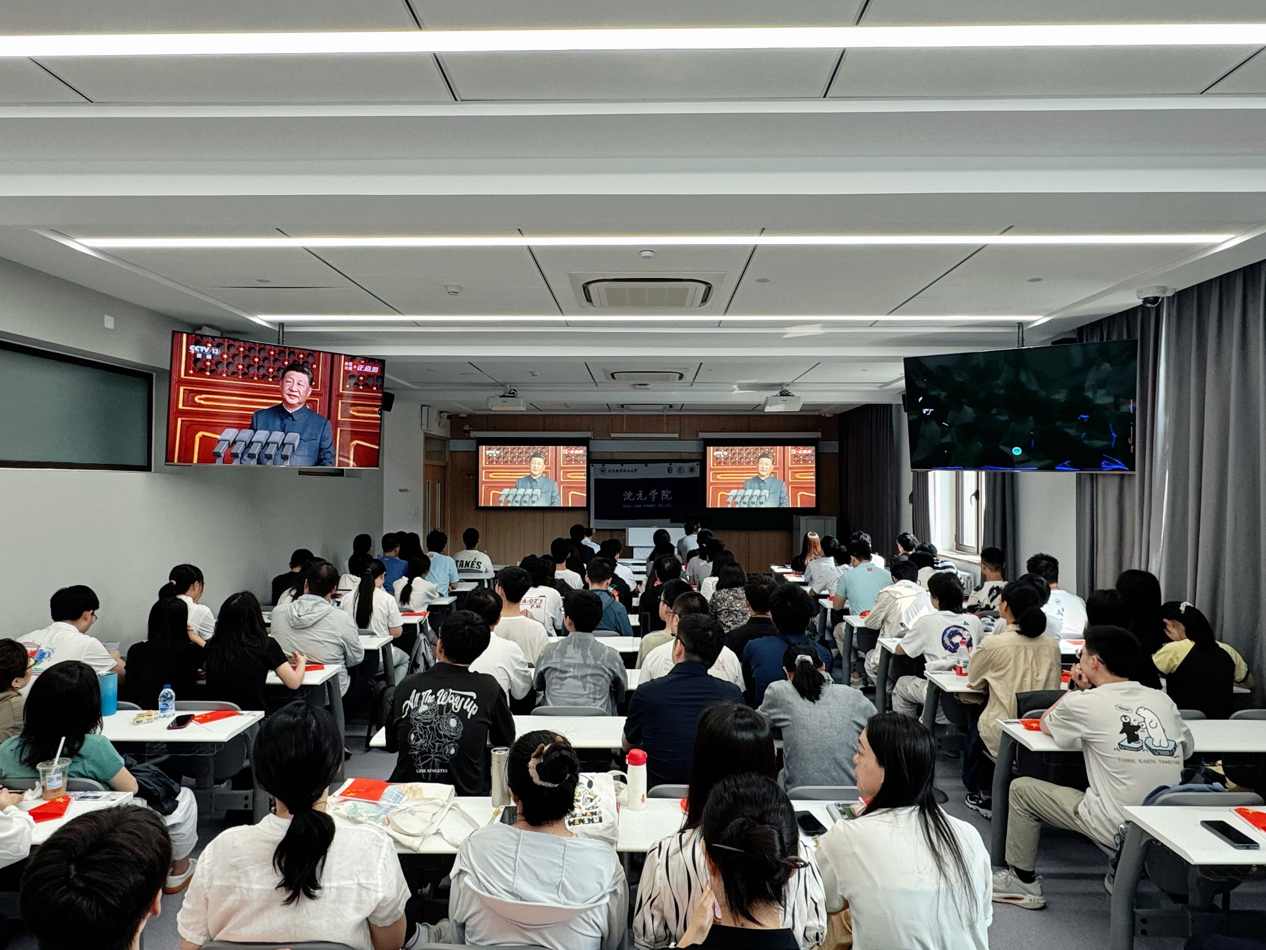 9月3日上午9时,纪念中国人民抗日战争暨世界反法西斯战争胜利80周年大会在北京天安门广场隆重举行。中共中央总书记、国家主席、中央军委主席习近平发表重要讲话。北航WilliamHill积极部署,在公司路校区、沙河校区同步设置直播会场,组织全体在校院领导、教师,员工和专兼职辅导员共100余人集中观看。
