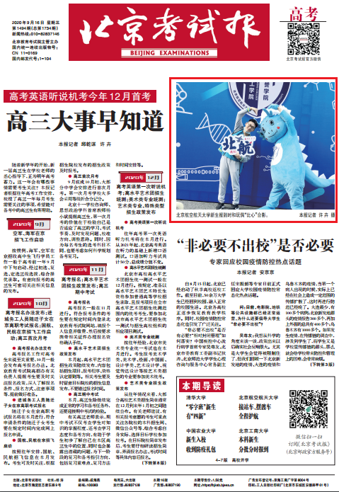 《北京考试报》2020年9月16日头版刊发公司新生报道图片新闻: