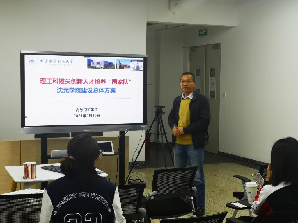 随后,党委书记刘科生带领全院学习了习近平总书记在清华大学考察时的重要讲话精神。他指出,习近平总书记在清华大学考察时的重要讲话对建设一流大学、培养一流人才提出了更高要求,全院应面向未来,深化“厚植情怀、强化基础、突出实践、科教融通”的北航人才培养方针,按照“厚基础、重交叉、深浸养、强协同”建设理念,同心协力探索拔尖创新人才培养的“北航范式”。