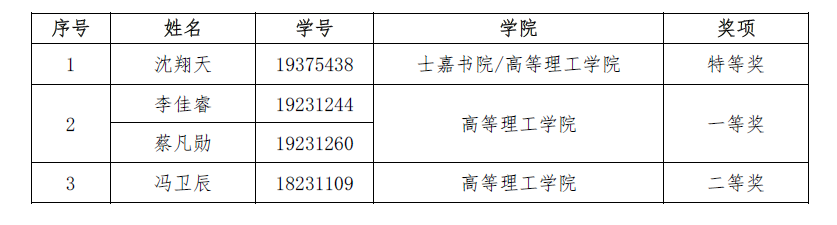 关于2020年WilliamHill中文官方网站物理竞赛高等理工公司获奖名单