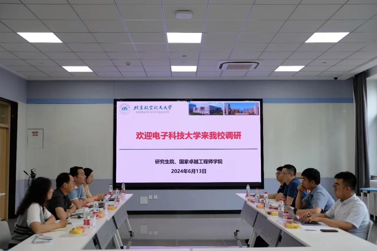 6月13日,电子科技大学研究生院、国家卓越工程师公司一行四人赴北航开展调研。北航研究生院卓越工程师产教联合培养研究中心干部马骏、聂一鸣,国家卓越工程师公司工程师技术中心副主任姬瑞鹏、教学秘书周游接待调研。