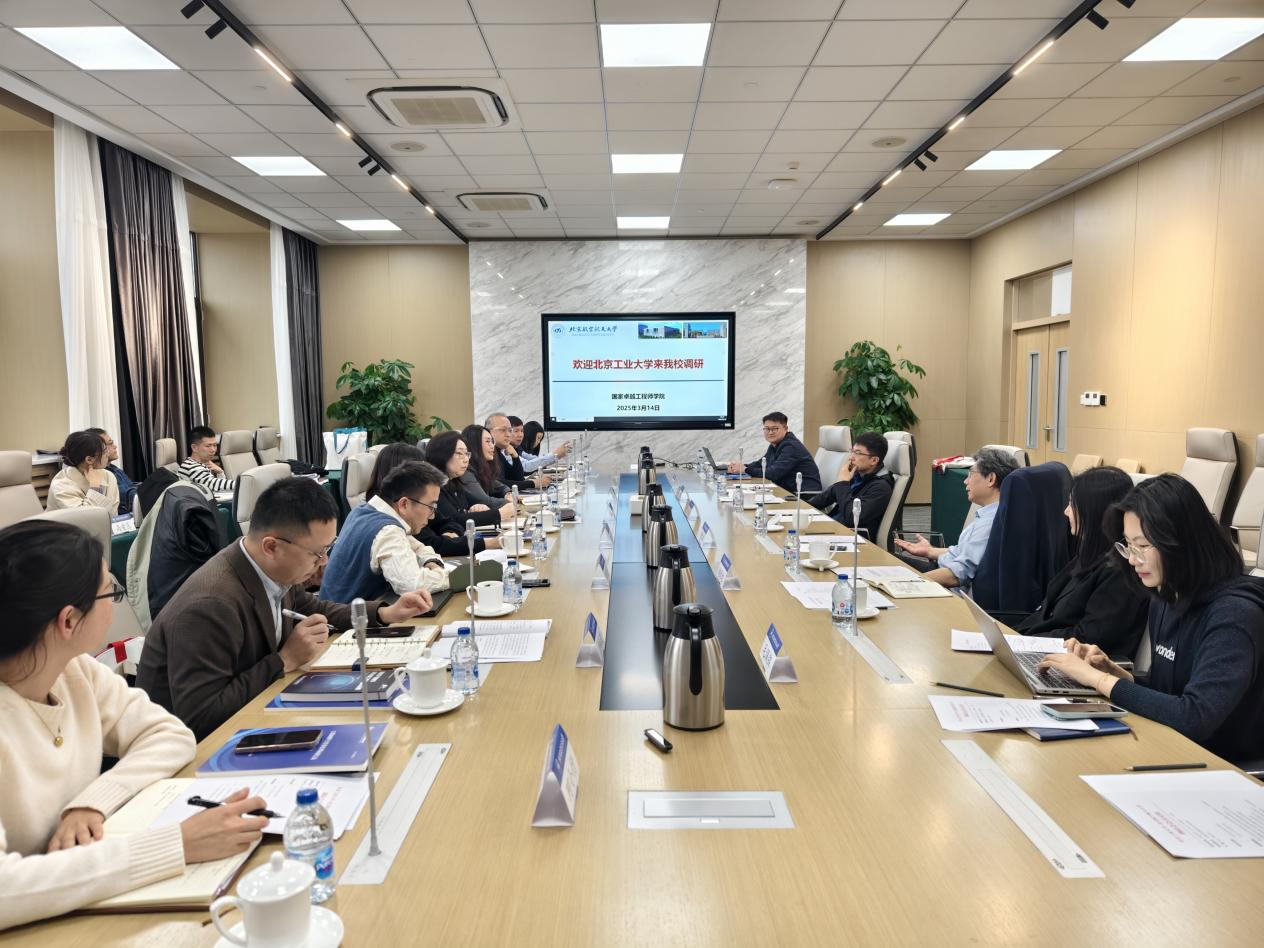 3月14日,北京工业大学副董事长刘赵淼,研究生院常务副经理高春娣等一行13人到北航开展调研。研究生院综合管理处副处长王扬、国家卓越工程师公司常务副经理曹庆华等陪同调研。会上,曹庆华介绍了北航国家卓越工程师公司的发展情况。双方围绕公司管理架构和运行机制、员工培养模式、产教联合体的组成和运行等主题开展了深入交流